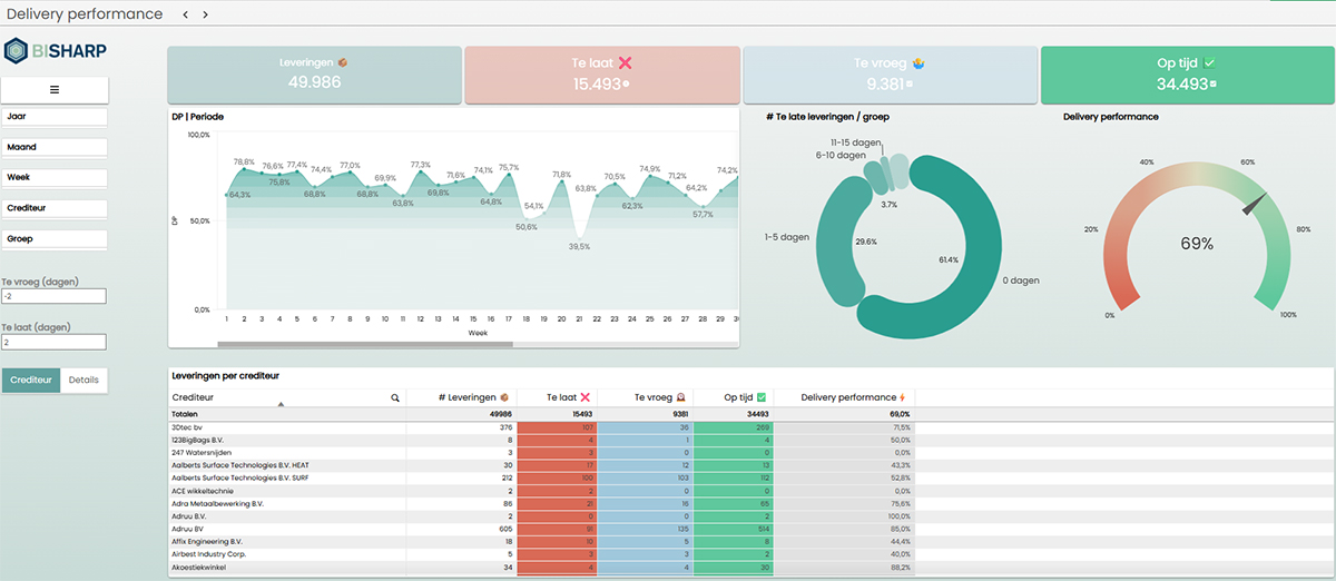 Bisharp is ontstaan uit jarenlange BI consultancy in de maakindustrie. Alle belangrijke KPI’s voor maakbedrijven zijn standaard aanwezig en worden constant geoptimaliseerd. Dankzij de branche specifieke focus is de implementatie snel en eenvoudig. Zonder grote investering beschik je direct over een compleet cloud-based BI platform. |